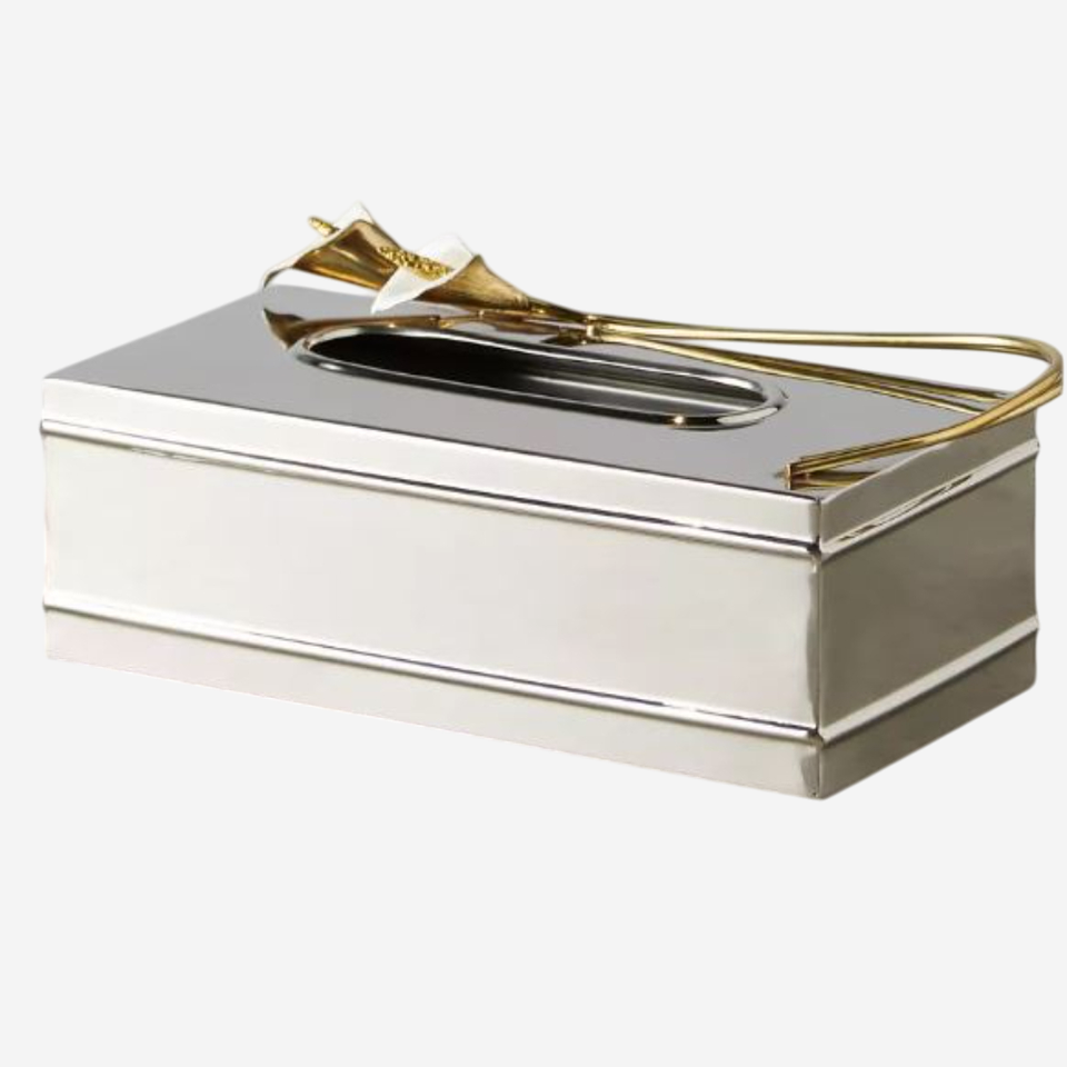 Boîte à mouchoirs en métal décorative fantaisie boîte en métal martelé enduit de poudre blanche de qualité créative avec porte-serviettes d'accent de fleur