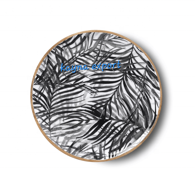 Fancy Decorative Printed Enamel Finish Bamboo Serving Tray Food Safe Grade Wood Tray Fruit Platters Handicraft Technology Home