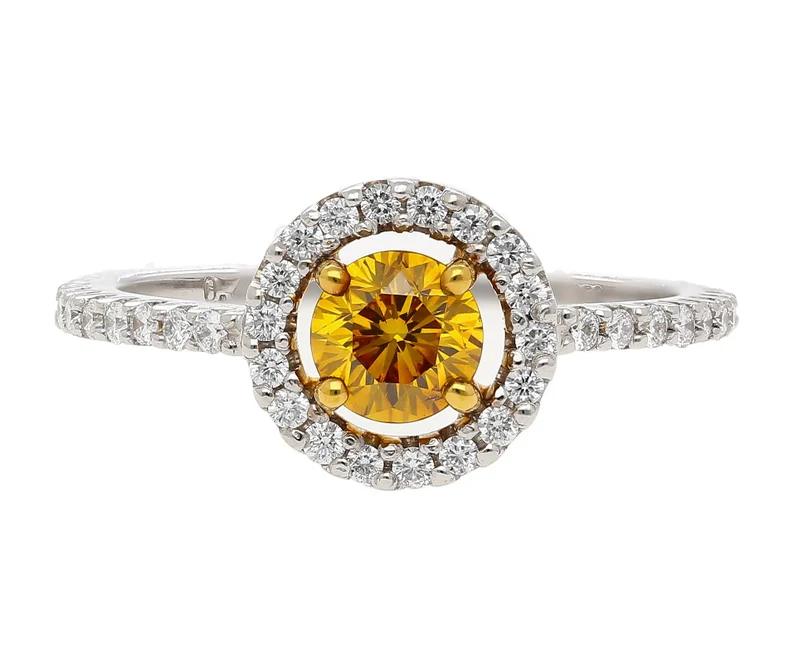Bague de fiançailles en diamant jaune orange profond fantaisie bague Halo en diamant flottant pour bijoux de mode pour femmes