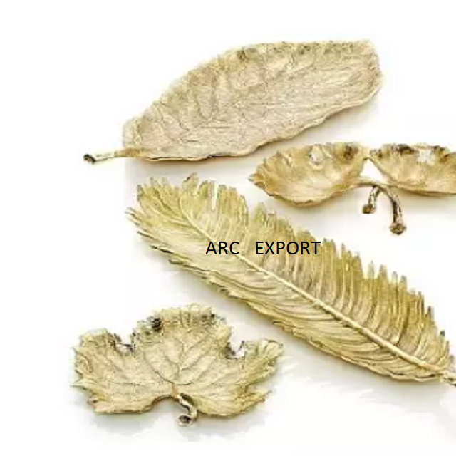 Fancy Desgning Metal Table Decoration Food Platters Leaf Shape Table Decorating Food Serving Tray Tea and Coffee Serving Tray