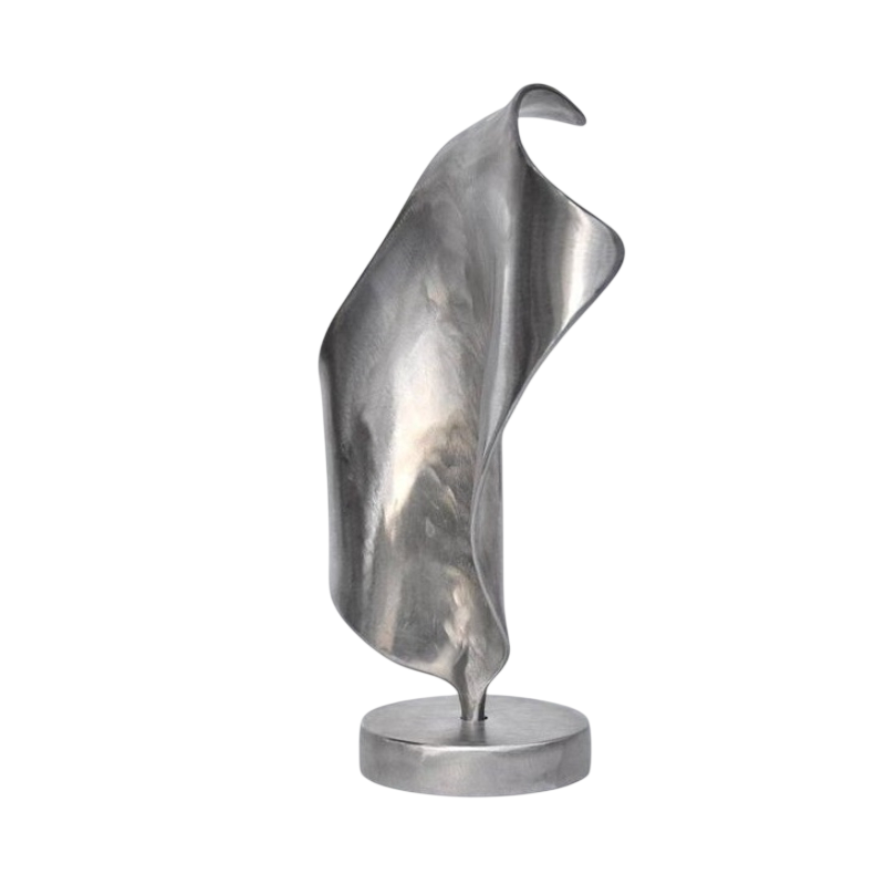 Sculpture abstraite en aluminium au design élégant avec finition argentée, sculpture décorative de table très demandée, fournisseur indien