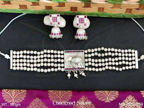 Fantaisie Design Long Collier En Argent Oxydé Ensemble Partie Porter Des Bijoux Beaux Bijoux En Argent Oxydé Traditionnel pour Les Femmes
