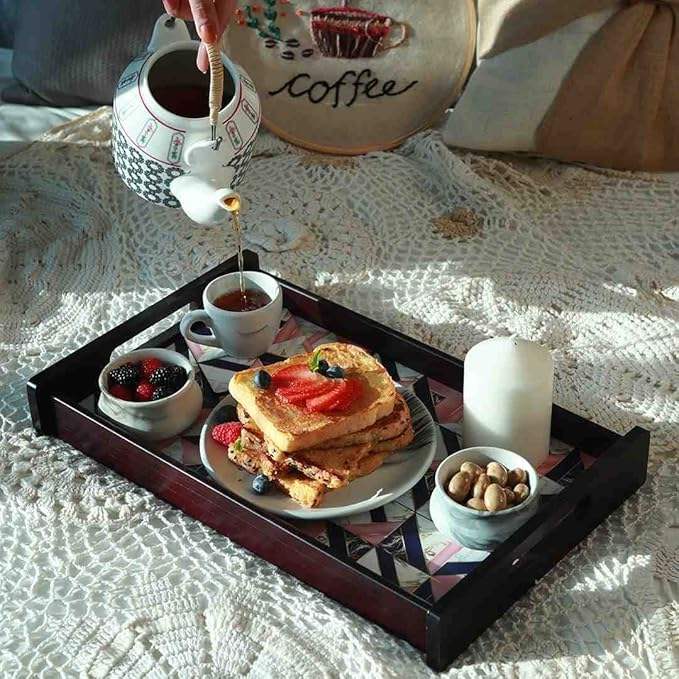 Plateau en bois de luxe au design élégant, fait à la main, élégant, pour la maison, la cuisine, le salon, ornements, plateau de service en bois