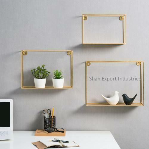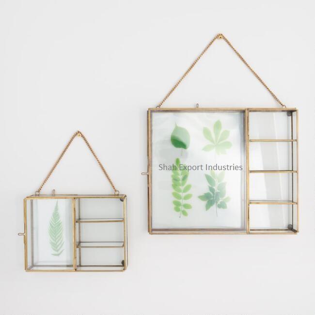 Fantaisie Design Tenture Murale Décoratif En Verre Vitrine Étagère Murale Boîte En Verre Présentoir En Verre Doré/Étagères En Laiton