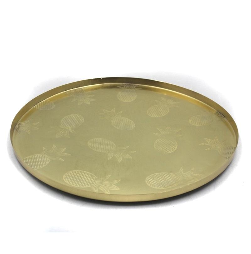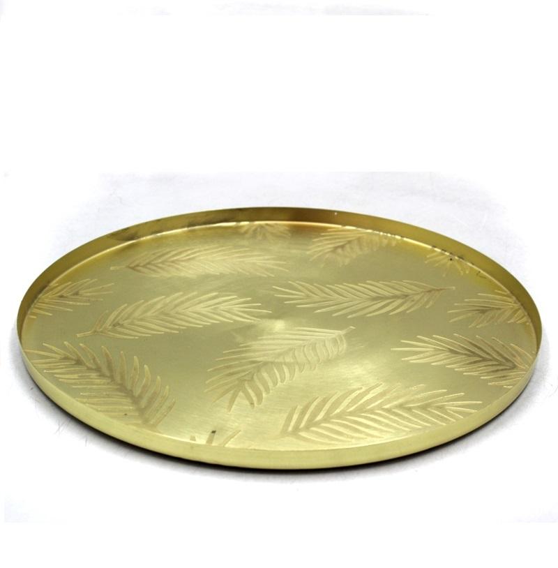 Plaque ronde de service en fer de créateur fantaisie utilisation plaquée en laiton pour la maison et l'hôtel assiettes de service personnalisées