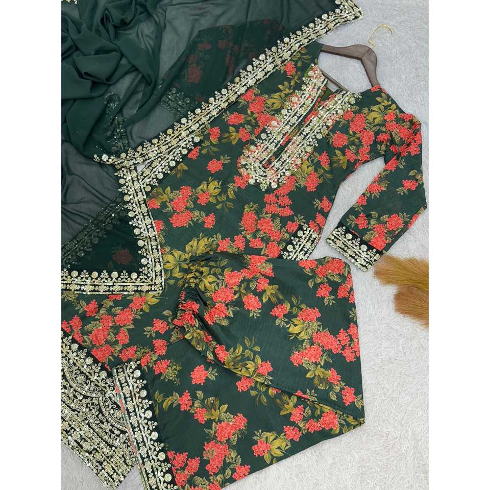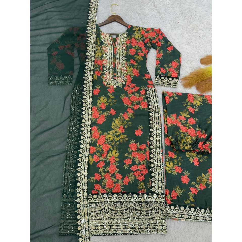 Haut de vêtement indien et pakistanais avec broderie numérique fantaisie, pantalon palazzo et dupatta