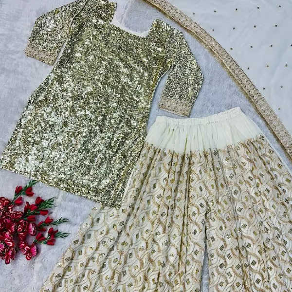 Duppata brodé fantaisie avec haut et ensemble de vêtements de fête d'hiver Plazzo