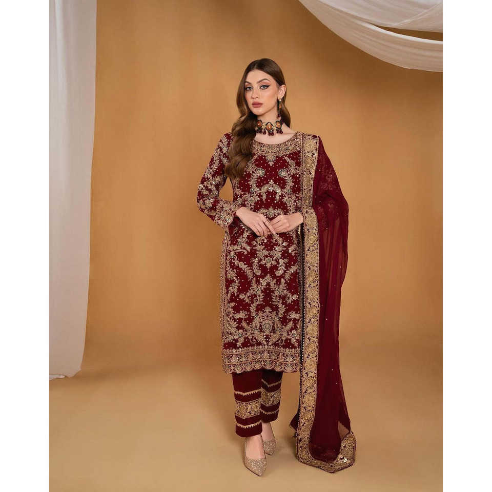 Broderie fantaisie et travail à la main en pierre Dupatta Ensemble haut et bas de taille 2XL