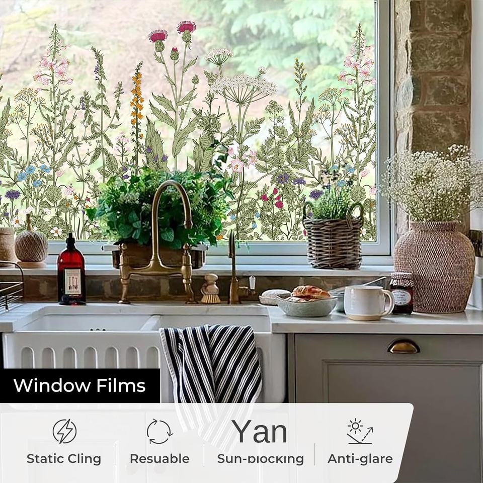 Film de fenêtre en PVC fantaisie, autocollant de fenêtre, film de fenêtre estival, adhésif statique bloquant les UV, pour la maison, la cuisine, le bureau