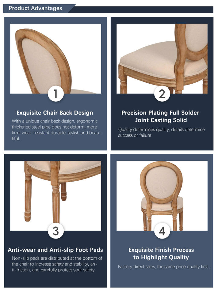 Chaise de style français chic, en chêne provincial, en rotin, dossier ovale, en bois massif, empilable, salon, mariage, événement, hôtel, salle à manger, Louis XVI