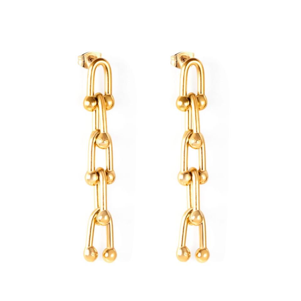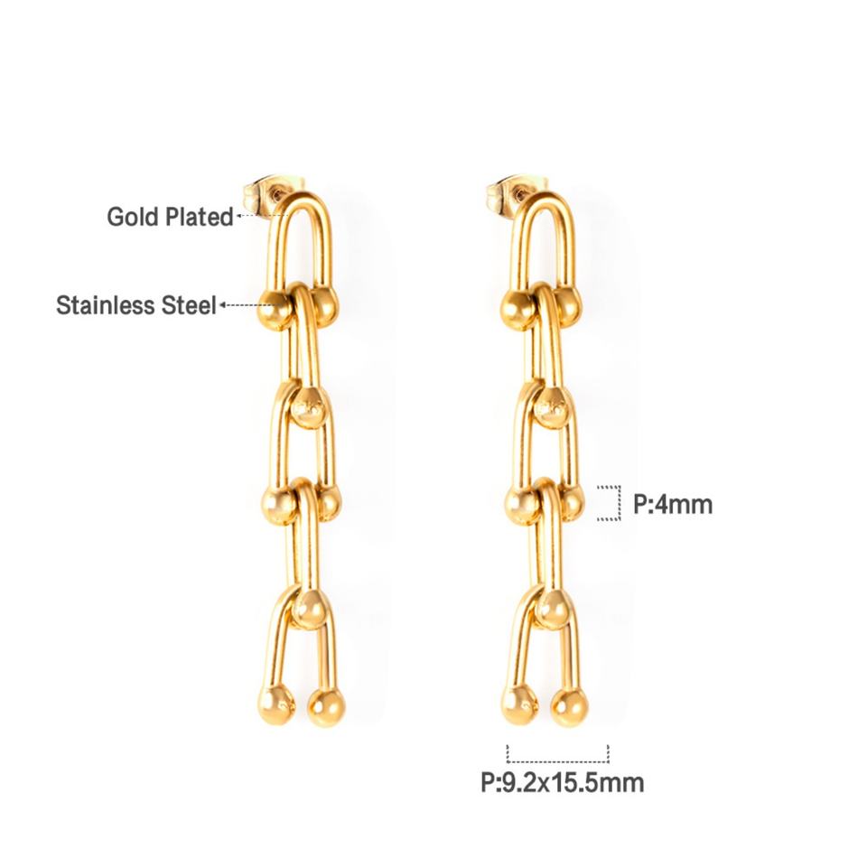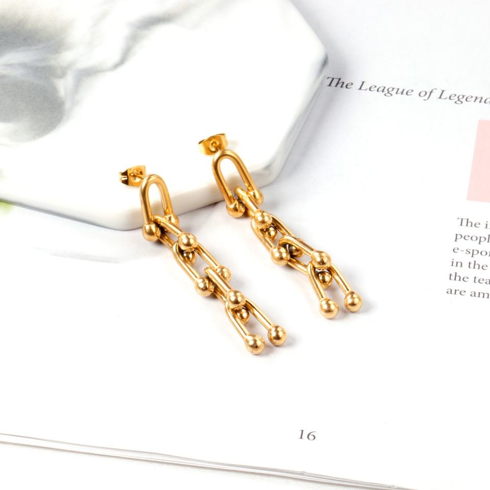 Boucles d'oreilles pendantes élégantes et populaires en acier inoxydable plaqué or 18 carats avec motif graphique fantaisie pour femme