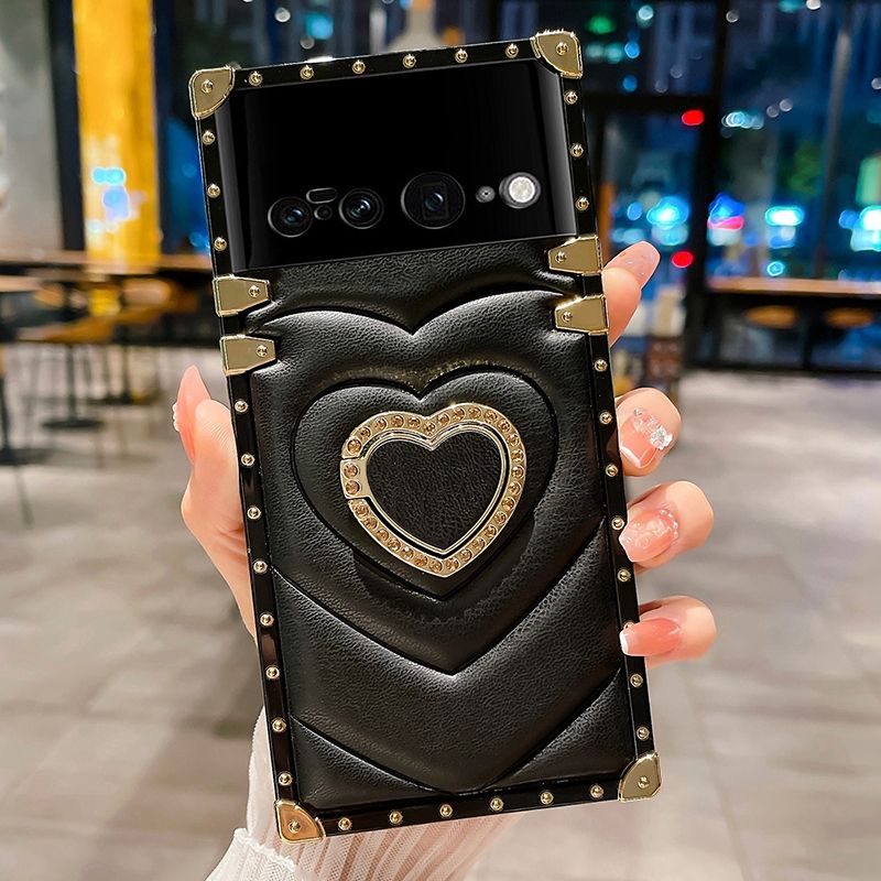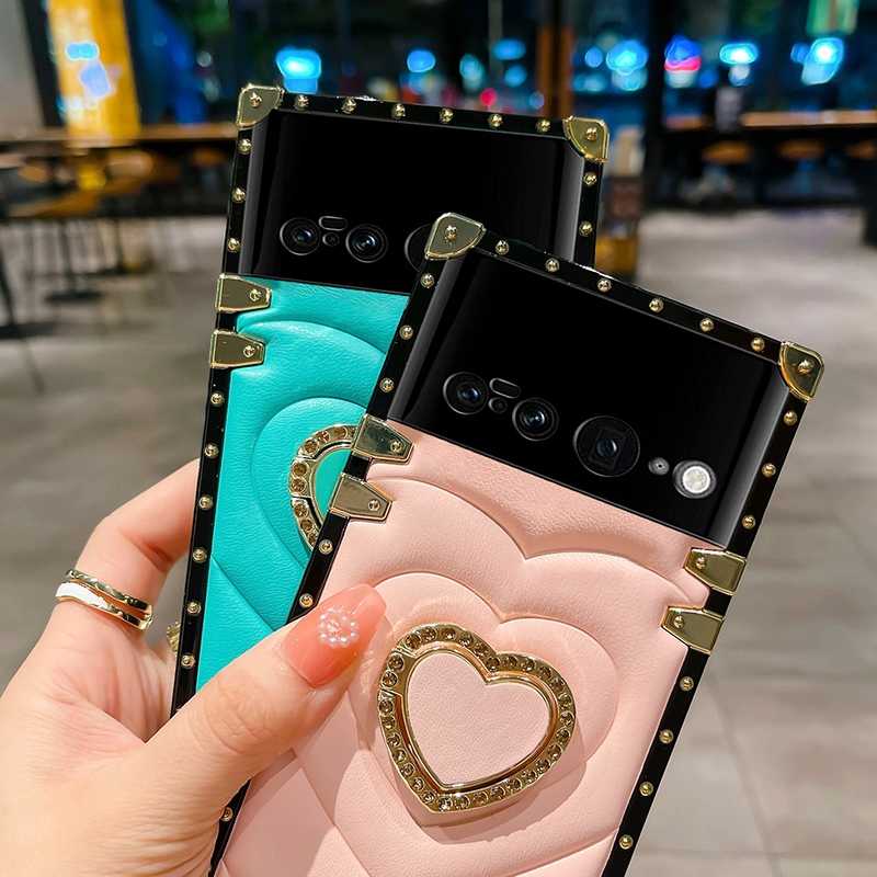 Coque arrière de téléphone à design de cœur fantaisie pour Google Pixel 7, coque pour Google Pixel 6A avec support d'anneau