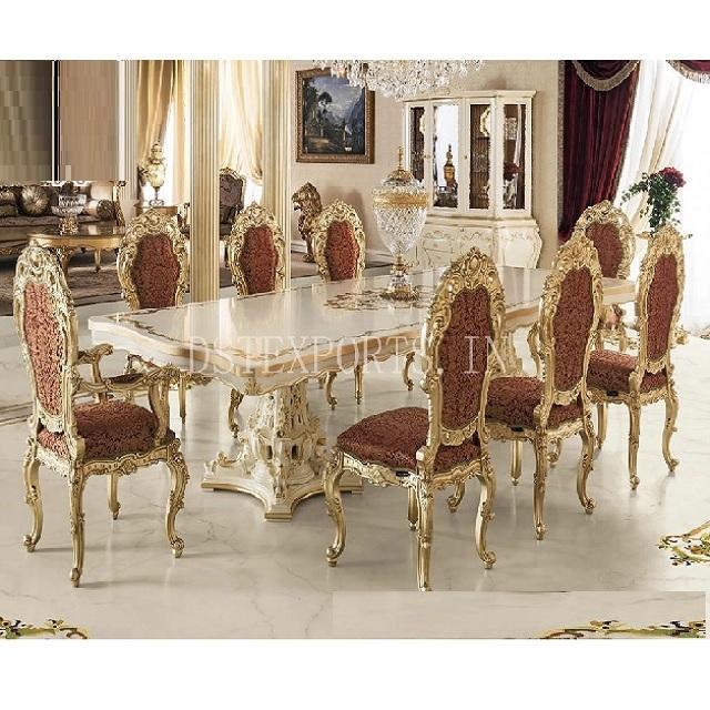 Table à manger sculptée lourde fantaisie avec chaises Design impérial ensemble de meubles de salle à manger sculptés aspect somptueux ensemble de table de salle à manger sculpté