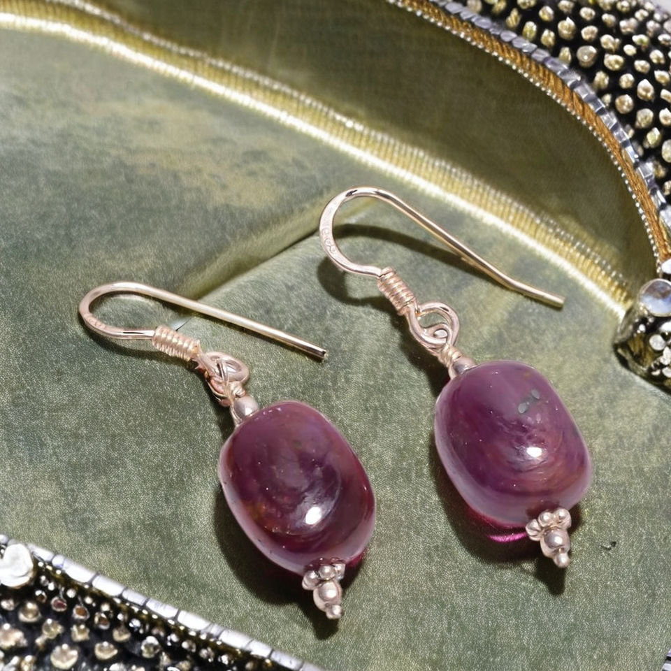 925 Sterling Silver Ethnic Design Dangle Earrings with Natural Corundum Ruby Diamond Drop for Weddings Parties Engagements Gifts
