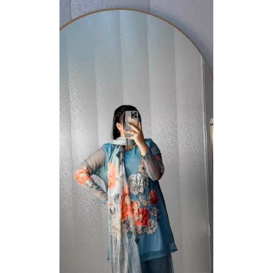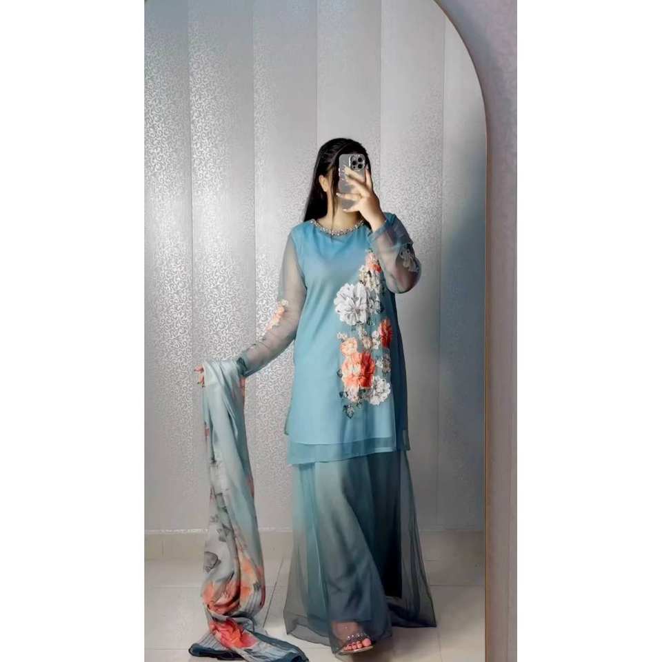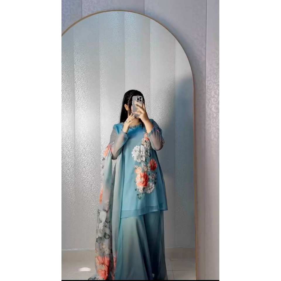 Ensemble de costume indien et pakistanais fantaisie avec impression numérique et véritable travail à la main Khatali