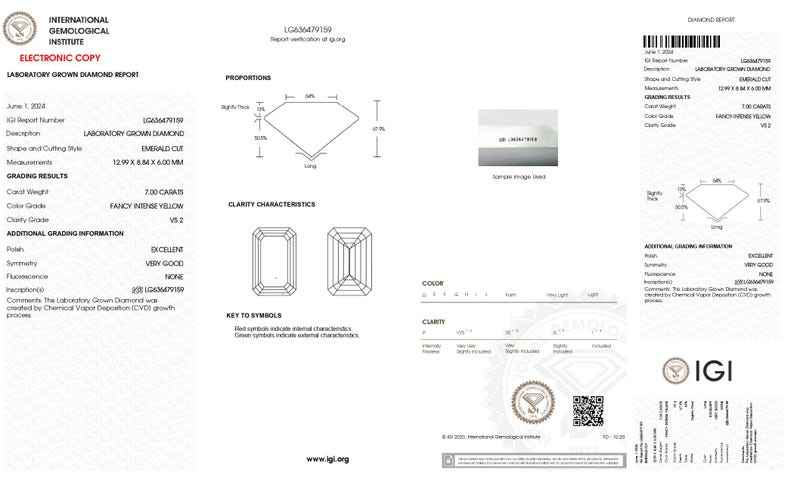 Diamant Fancy Intense Yellow 5 carats Emerald Cut Lab Grown Diamond IGI Certified Yellow Emerald Cut VS Clarity Lab Grown Diamond