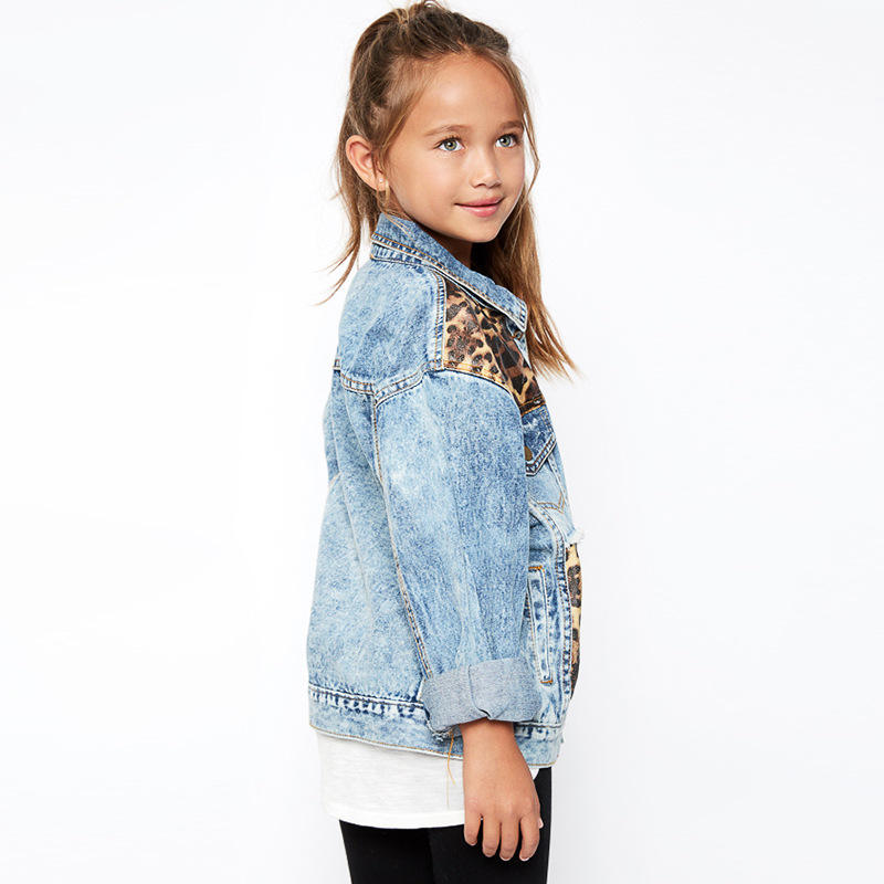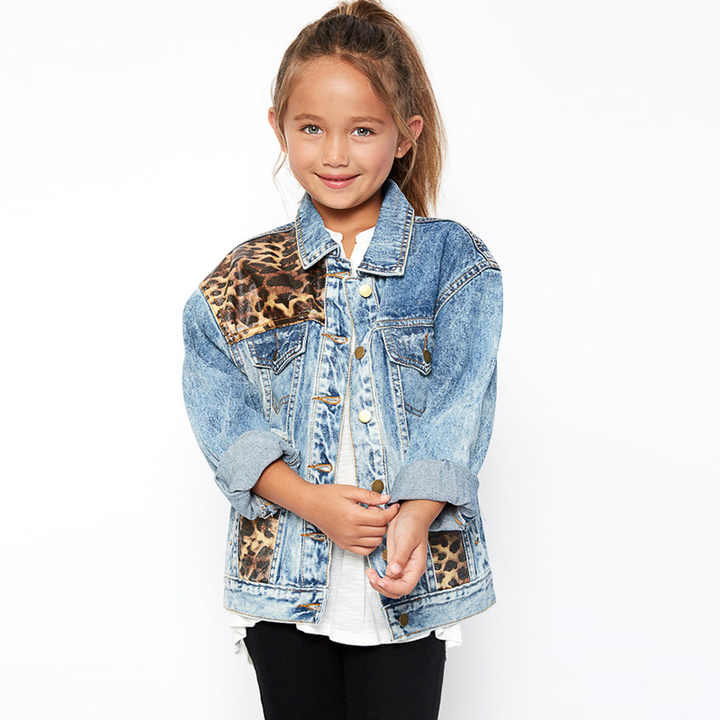 Vestes en jean fantaisie avec patchs léopard et boutons métalliques pour filles d'âge moyen