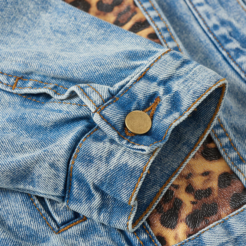 Nom:Vestes en jean avec patch léopard, boutons métalliques et détails fantaisie