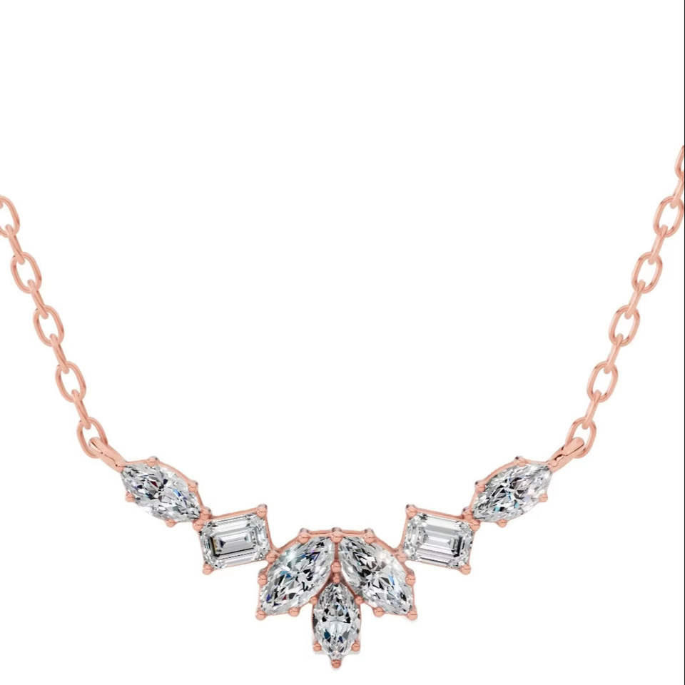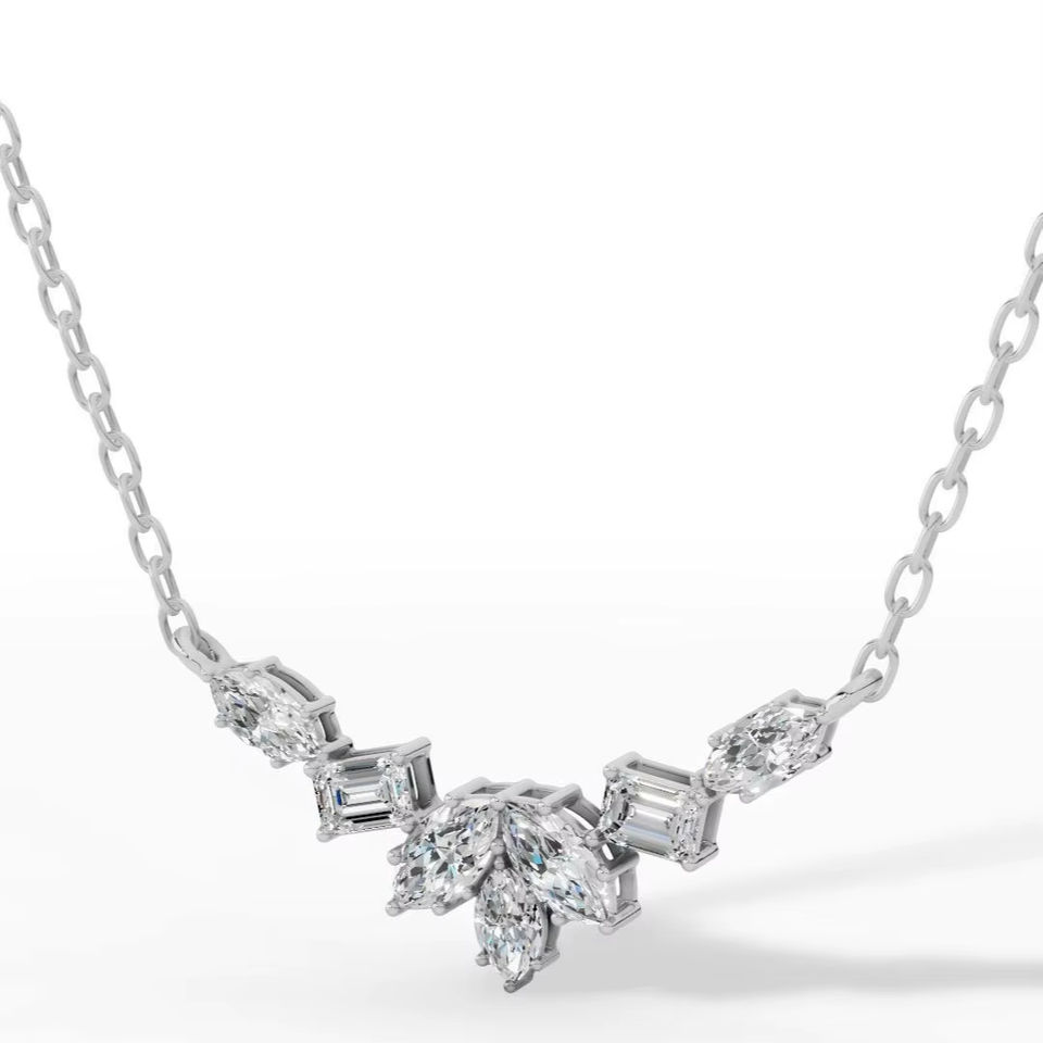 Collier fantaisie en argent 925 plaqué or avec diamant de laboratoire taille marquise émeraude, couleur incolore VVS, pour mariage, anniversaire, fête, pendentif et chaîne