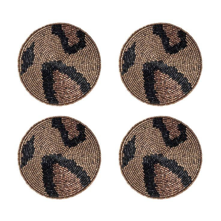 Fantaisie imprimé léopard perlé travail manuel broderie 4 ensemble sous-verre élégant Designer Premium pour mignon exclusif tasse de Table à thé
