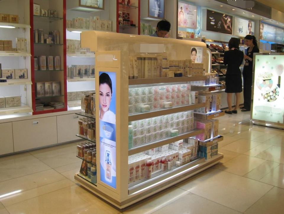 Conception de magasin de maquillage fantaisie, étagères de présentation de cosmétiques, vitrine et mur de présentation de maquillage, kiosque de cosmétiques pour centre commercial