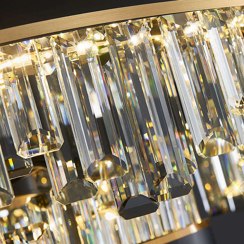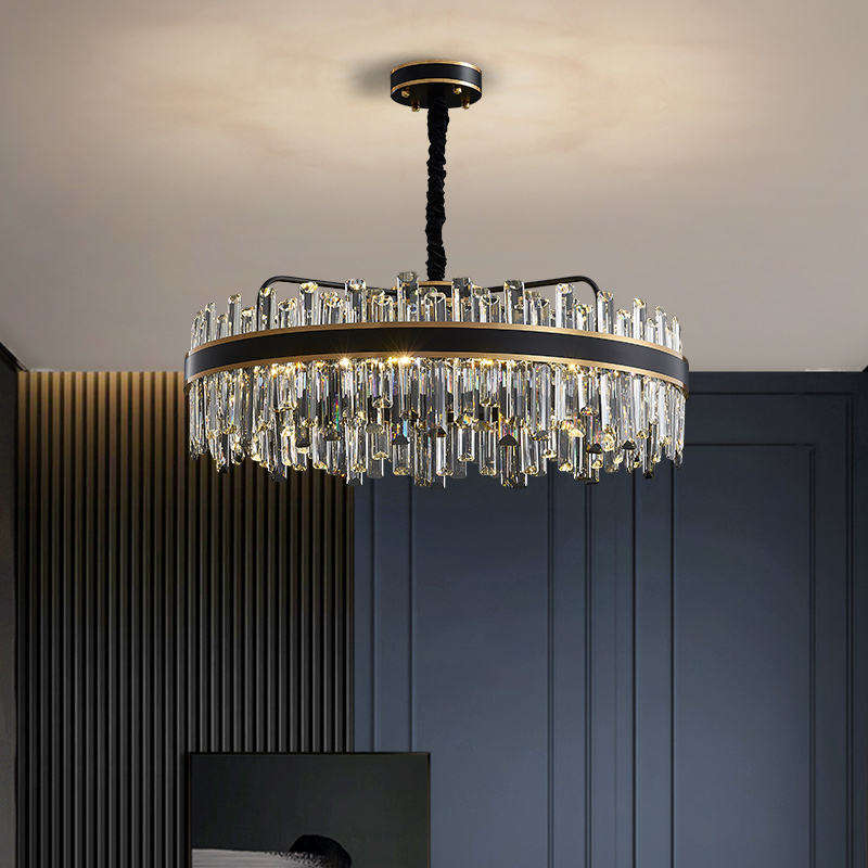 Fantaisie Moderne Hôtel Salon Finition Noire Ronde Multy Anneau Connecté Cristal Pendentif Lumière