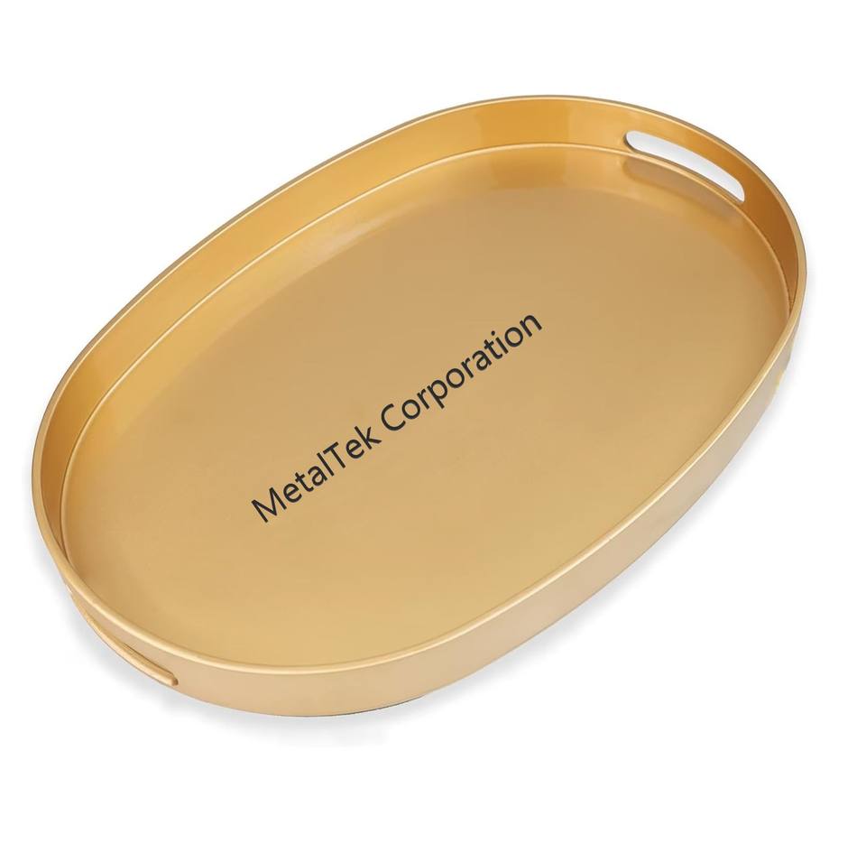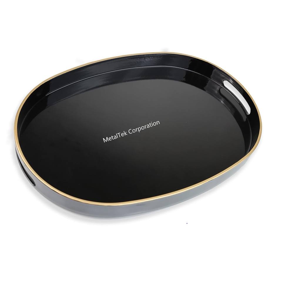Plateau de service bleu ovale fantaisie couleur personnalisée plateau de chocolat d'affichage décoratif laqué en métal de fer pour Bar de mariage de Restaurant