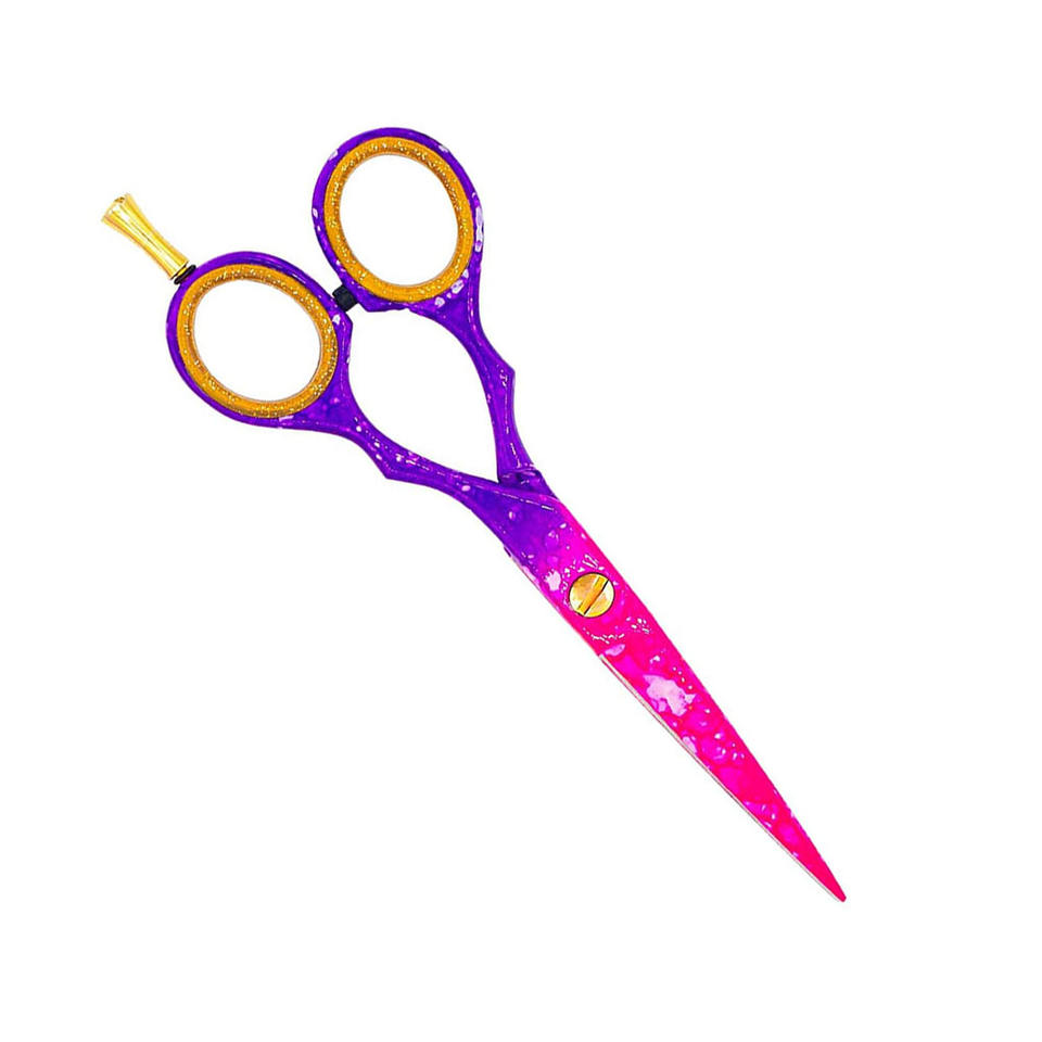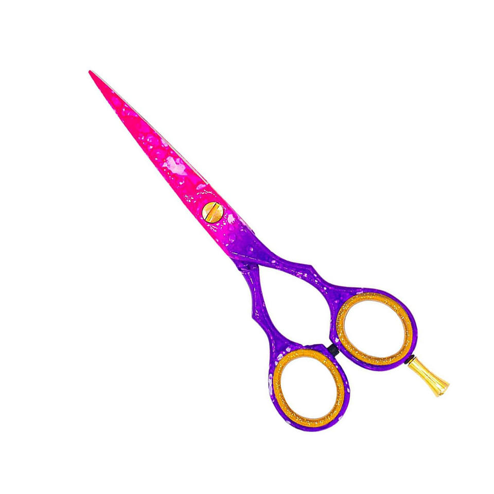 Ciseaux de coiffeur de coupe de cheveux enduits de couleur de papier de fantaisie 5.5 "ciseaux de Salon d'acier inoxydable de repose-doigt réglable