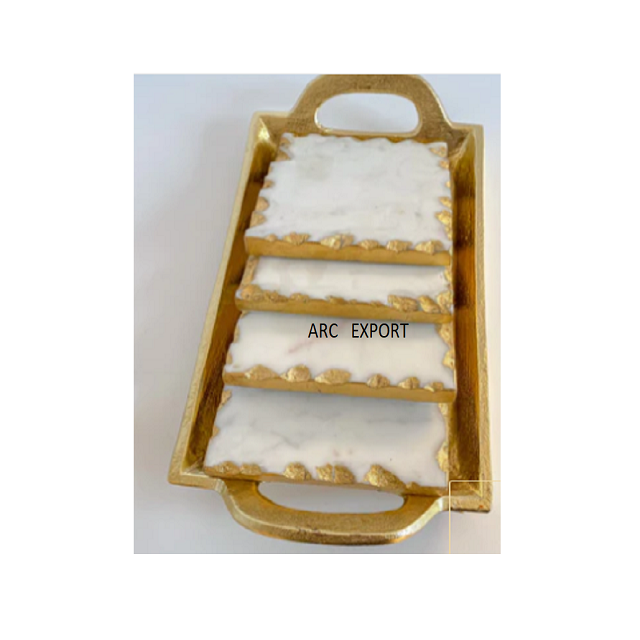 Fantaisie Rectangle Designer marbre fait caboteur décoration luxe moderne décoration Unique dernière bordure d'or décoration caboteur