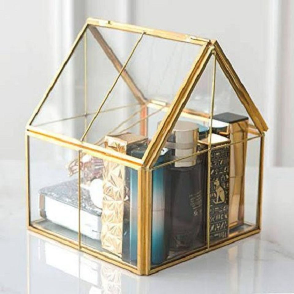 Boîte à bijoux rectangulaire moderne en métal et verre, bordure en laiton, verre transparent, organisateur de bijoux de haute qualité, taille personnalisable, moderne
