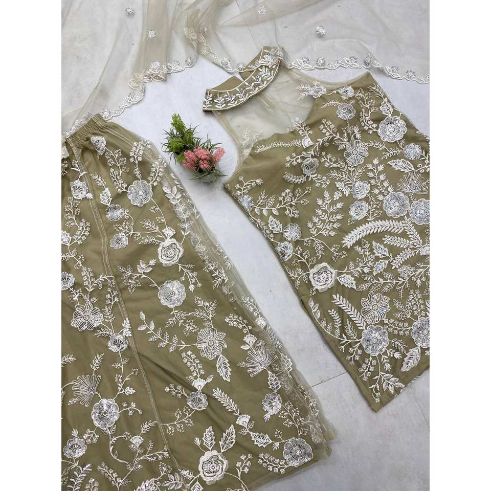 Ensemble Salwar Kameez Vert Fantaisie LG pour les fêtes, avec un magnifique Dupatta et un Plazzo en polyester, taille L