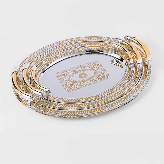 Ensemble élégant de 2 et 3 pièces en acier inoxydable, plateau nordique doré, plateau de service ovale finition miroir, utilisation pour le thé, le café