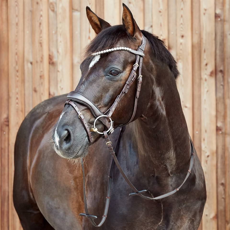 Fancy Show Bridle-Brun Foncé Portable De Luxe Premium Look Classique À LA MODE Smart Crank Noseband Halter Combo avec Rênes