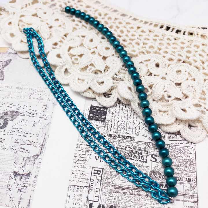 blue green color glass pearl beads stand with aluminum cable chain