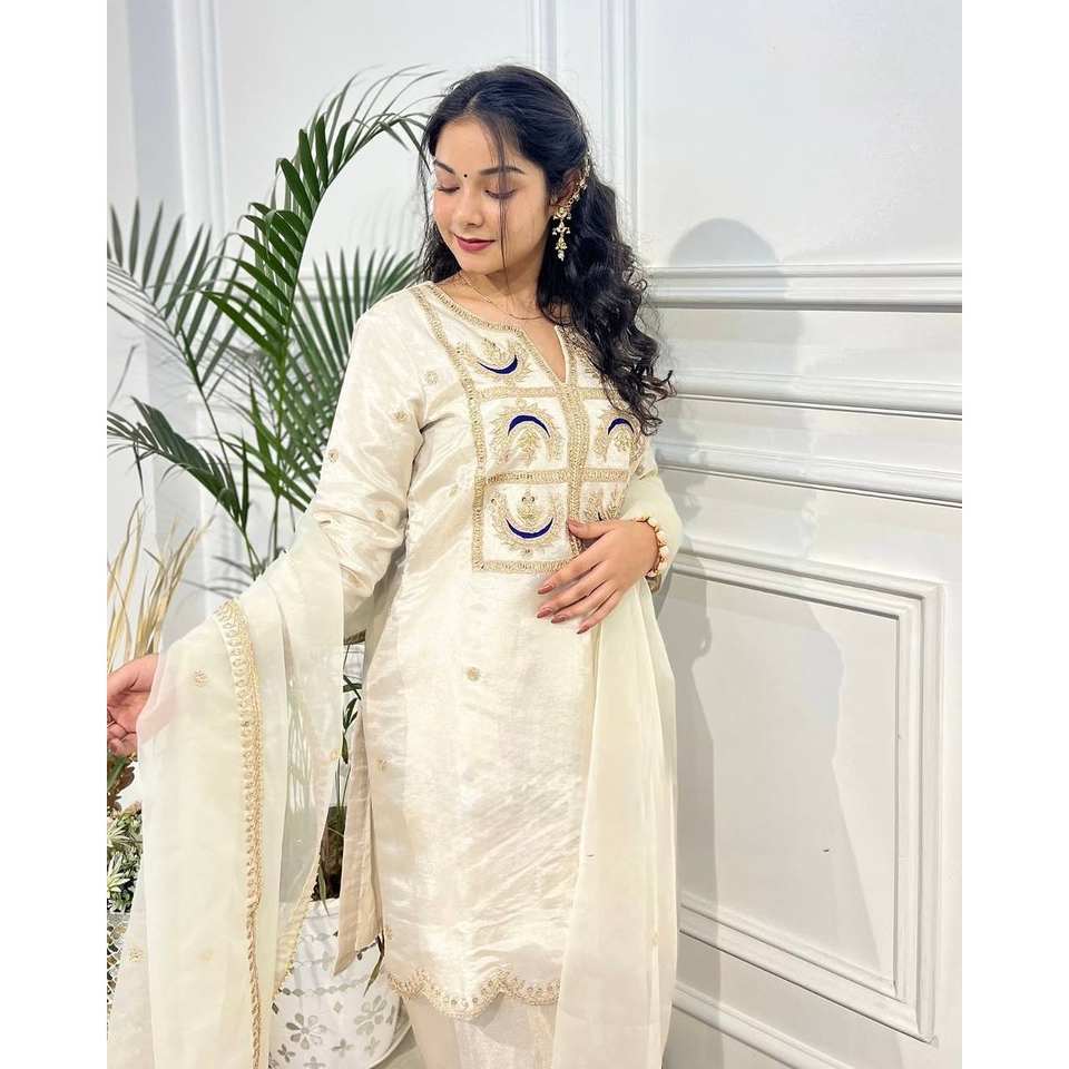 Ensemble haut-bas et dupatta fantaisie avec broderie et travail de sequins, taille XL