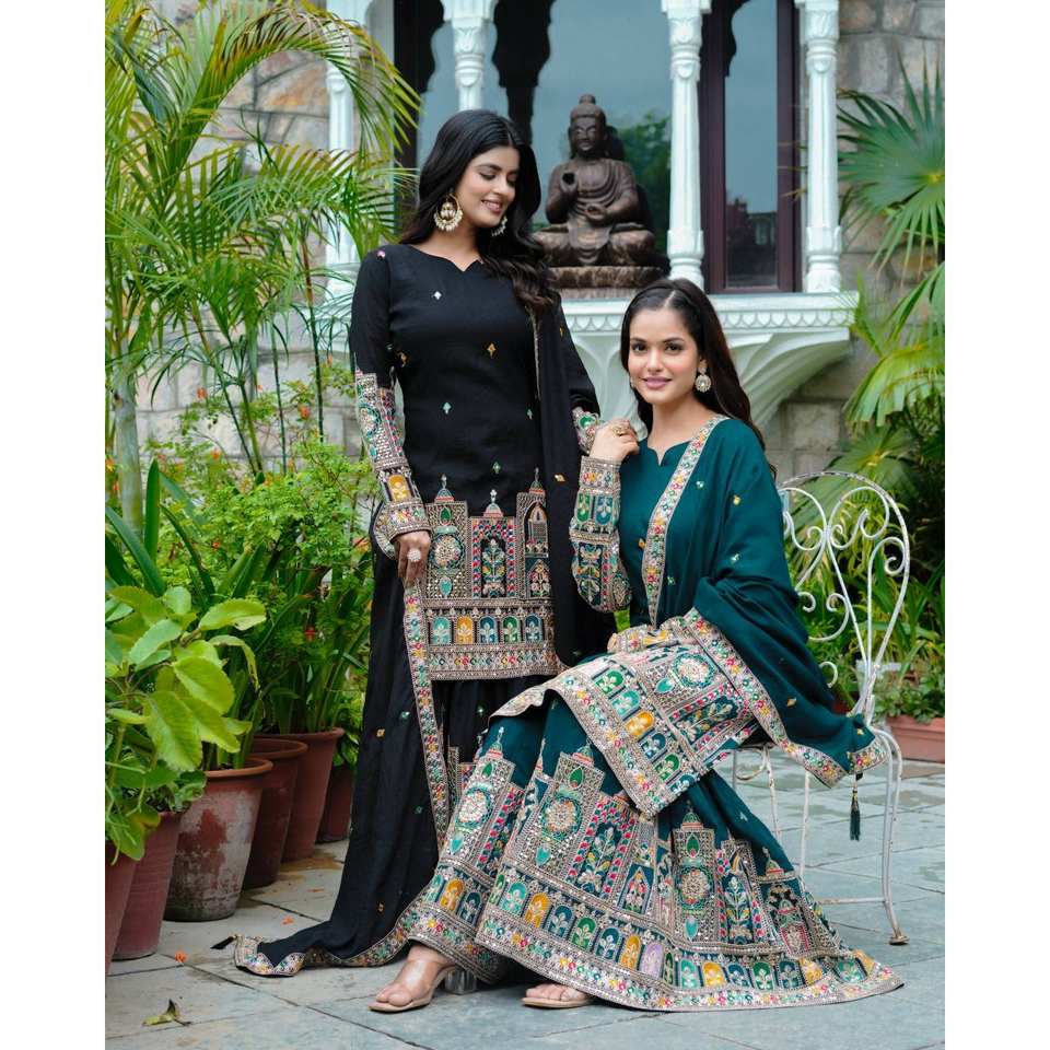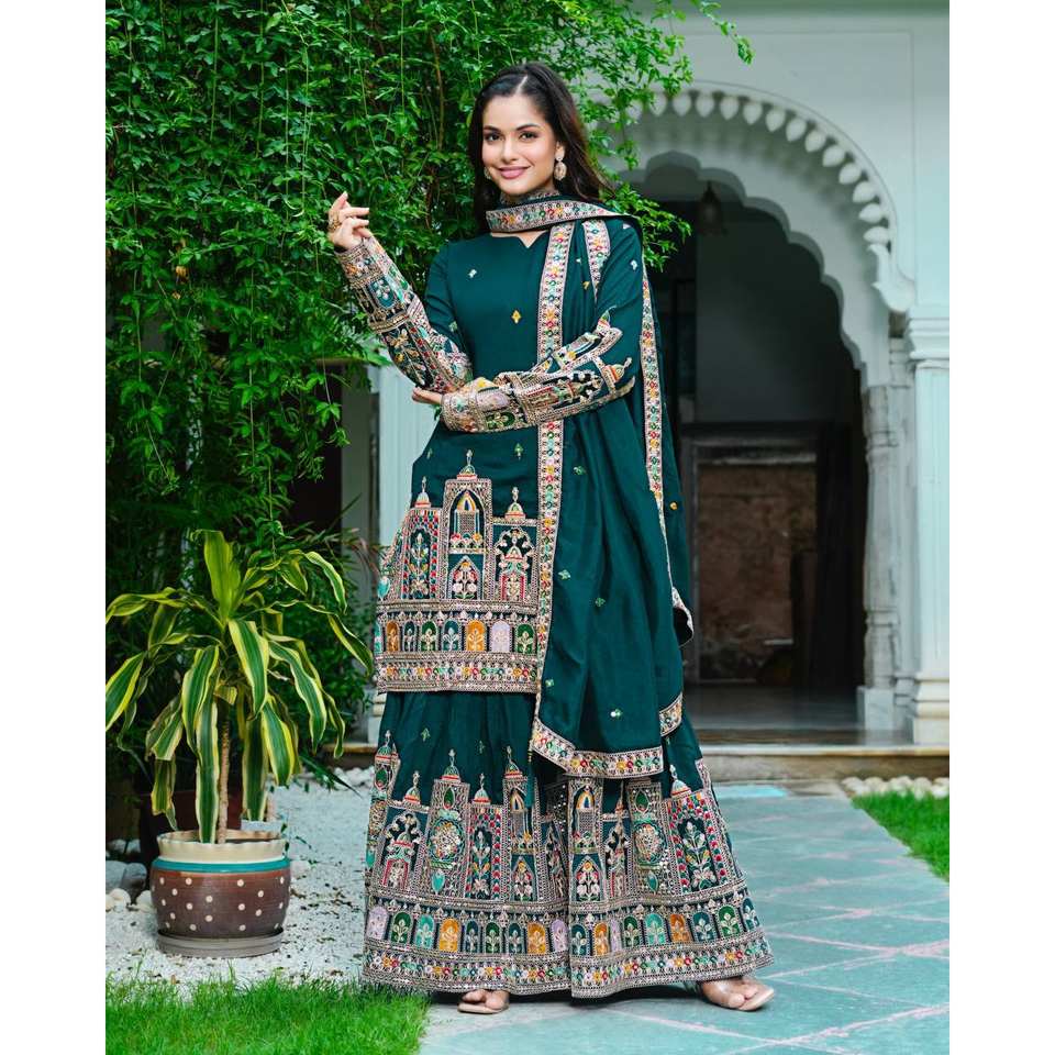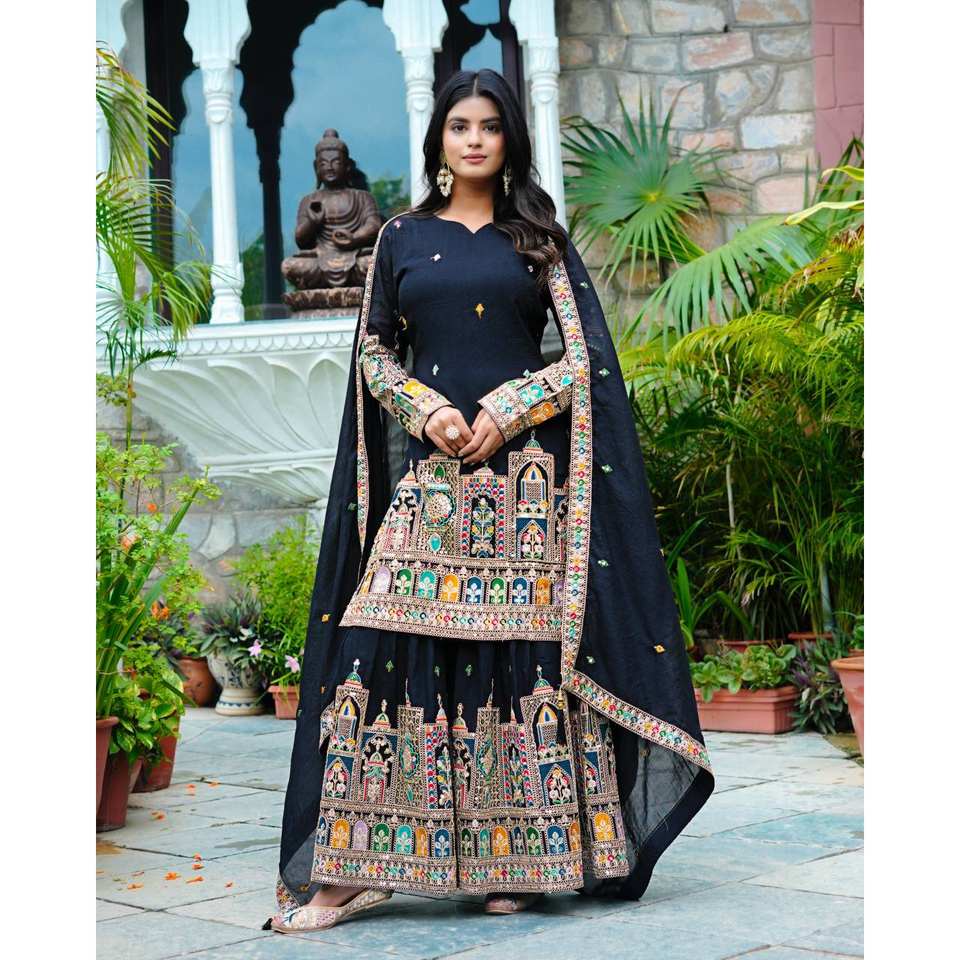 Ensemble haut-bas et dupatta fantaisie avec broderie et travail de sequins, taille XL