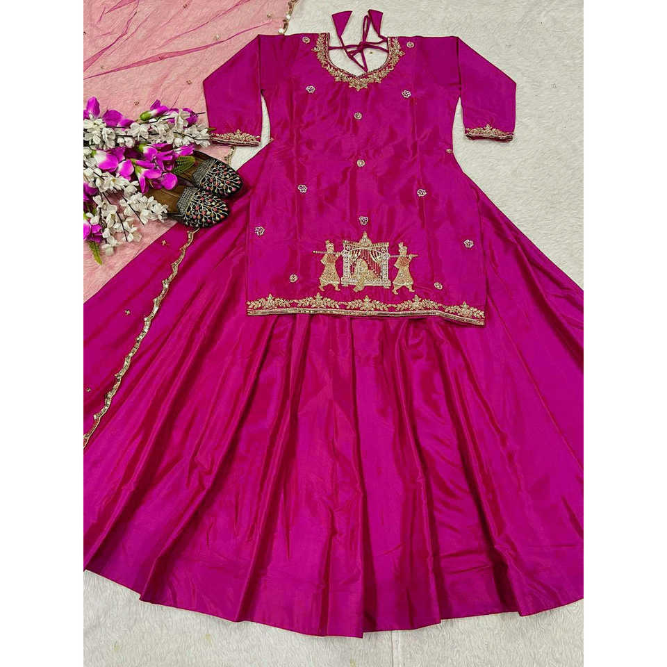 Fancy Top Lehenga avec broderie multi-aiguilles de séquence pour les mariages
