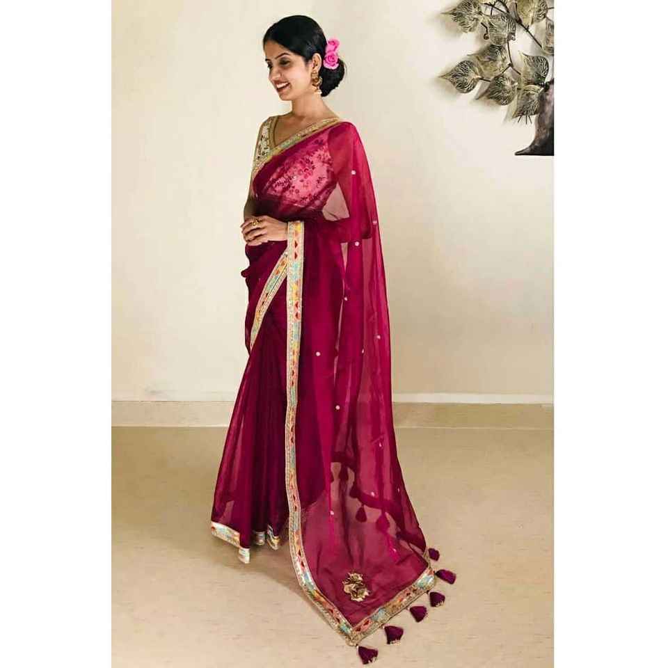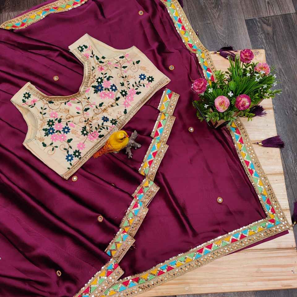 Sari chinois traditionnel fantaisie avec broderie de sequins, travail au fil et détails en dori