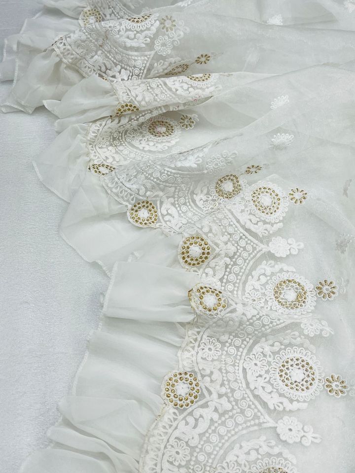 Cotton Thread Embroidery Work With Frill On Border