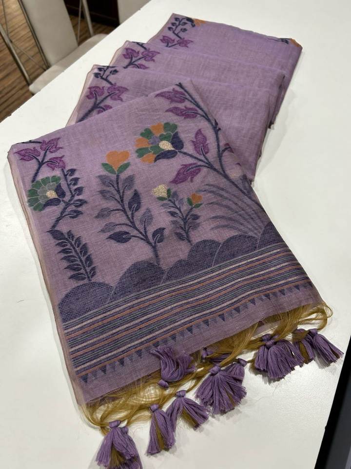 Nom du produit:Sari tendance et élégant en coton Muga doux avec travail de tissage Meena