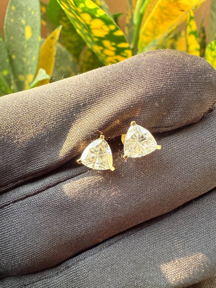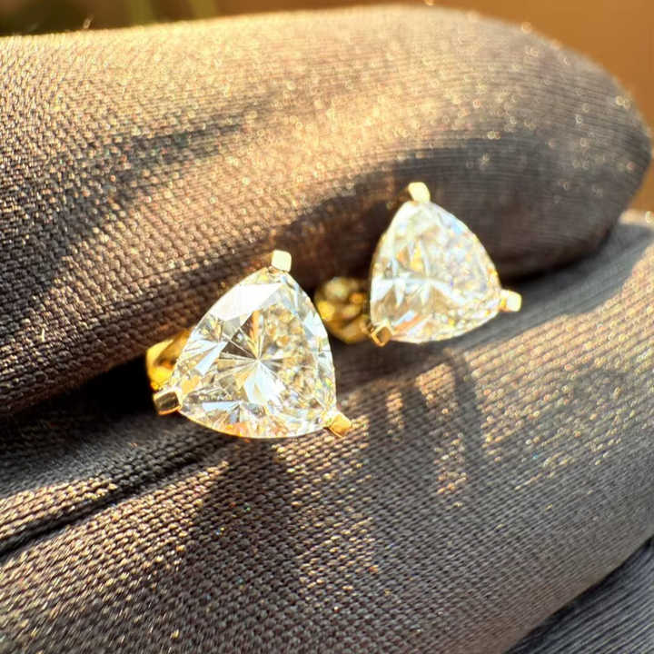 Boucles d'oreilles clous fantaisie en diamant de laboratoire taille trillion, or massif 14 carats, simples, pour usage quotidien, cadeau d'anniversaire de mariage, pour bijoux personnalisés