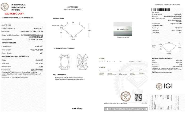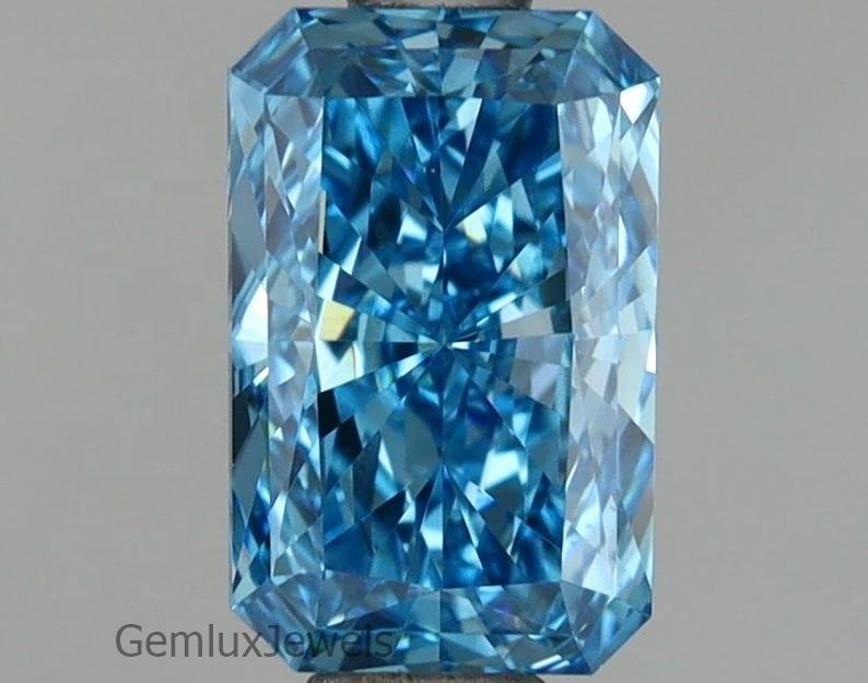 Diamant de laboratoire bleu vif fantaisie 8 carats, taille radiant, certifié IGI, clarté VS, pour la création de bijoux
