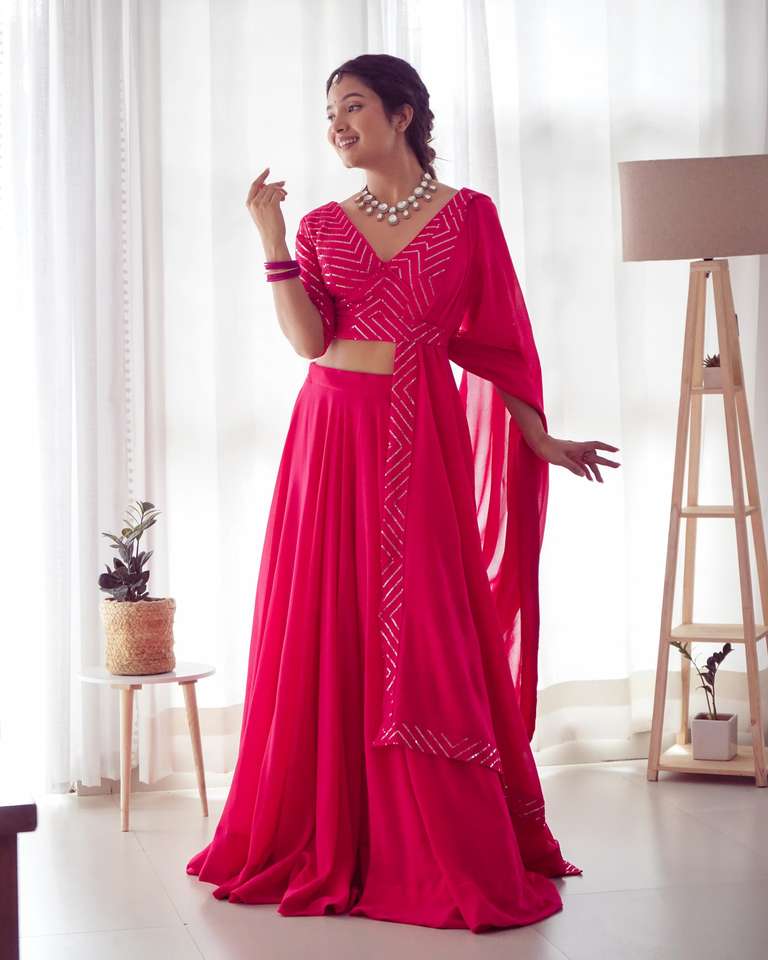 Fantaisie Femmes Élégant Pur Doux Georgette Lehenga Choli avec Contraste Dupatta pour les Occasions de Mariage de Quantité en Gros
