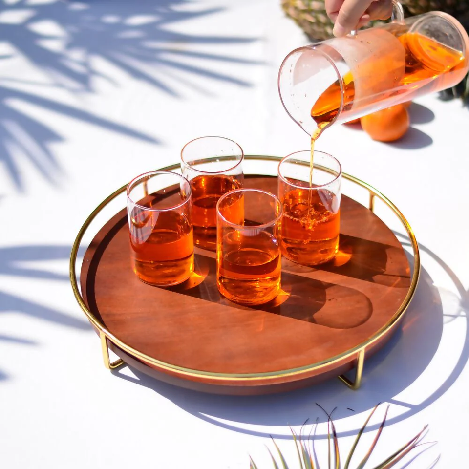 Plateau de service en bois fantaisie Plateau en bois rustique de haute qualité Plateau de service en verre à vin et à jus design