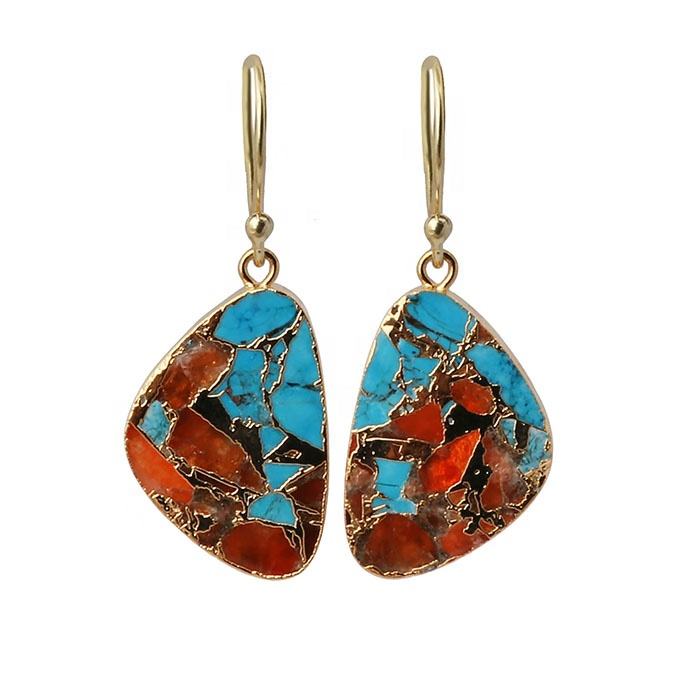 Oyster Cuivre Turquoise Boho À La Mode Plaqué Or Crochet Style Boucles D'oreilles Filles Fantaisie Forme Earjewelry pour Cadeaux