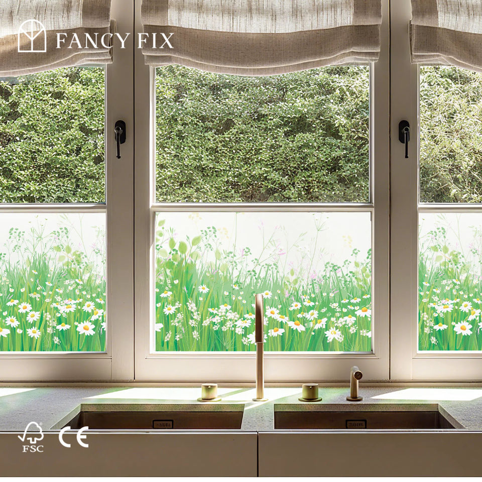 Fancyfix printemps fleur prairie intimité fenêtre s'accroche statique s'accrochent 45x200cm Film de verre décoratif