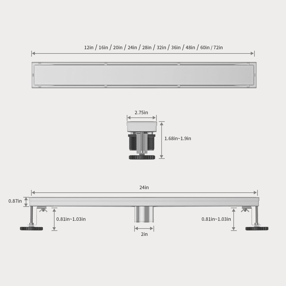 Extension d'insertion de tuile brossée rectangulaire longue et linéaire en acier personnalisée de taille Fanda Drain de sol SS304 avec couvercle d'insertion de tuile 2-en-1