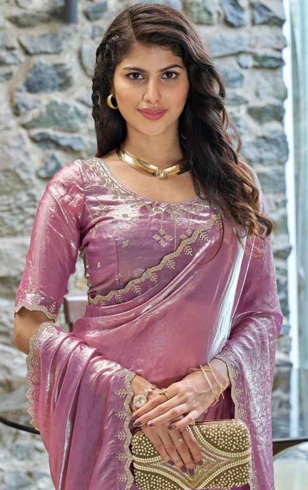 Fandy Satin Silk Women's Saree with Zarkhad Concept Diamond Border for Elegant Traditional Look Perfect for Festivals Made India