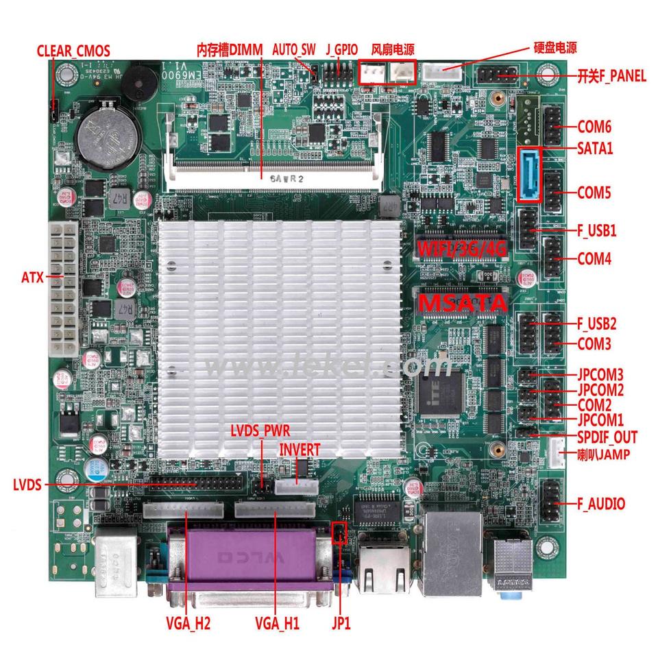 Carte mère mini-itx sans ventilateur Intel J1900, graphiques HD, 2 * Mini PCIe,1 * LAN,2/6 * COM,LVDS,VGA,LPT,ATX/DC power option sans ventilateur