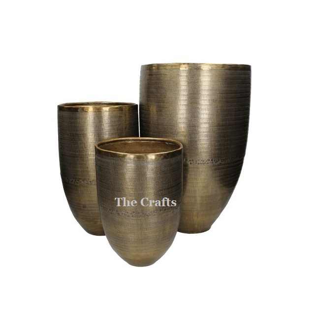 Jardinière en aluminium au design fantastique, ensemble de trois jardinières de différentes tailles, forme ronde, jardinières d'extérieur et d'intérieur